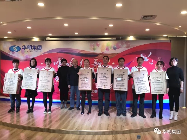 大賽經(jīng)過精彩的角逐,一等獎由演唱《歌唱祖國》及《我的中國心》的華明永盛隊獲得,二等獎由華明紙箱獲得,三等獎同樣競爭很激烈,集團聯(lián)隊和凱通汽車隊分數(shù)同樣為95.25分,經(jīng)過大賽規(guī)則,兩隊加唱一曲,并由評委打分,最終集團聯(lián)隊以95.5分獲得第三名。