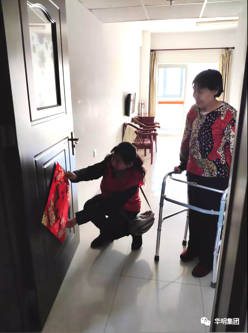 志愿者們到達(dá)養(yǎng)老中心后,有的在一樓大廳張貼充滿春節(jié)氣息的吊錢,有的來到老人的房間里,親手為老人的居室張貼福字并與老人們促膝圍坐,親熱地拉起了家常。詢問了老人們?cè)诰蠢显褐械纳顮顩r,并向他們致以新春的問候。當(dāng)老人看到志愿者們親手為他們貼上去的福字,吊錢后,喜笑顏開,對(duì)我集團(tuán)志愿者豎起了大拇指。