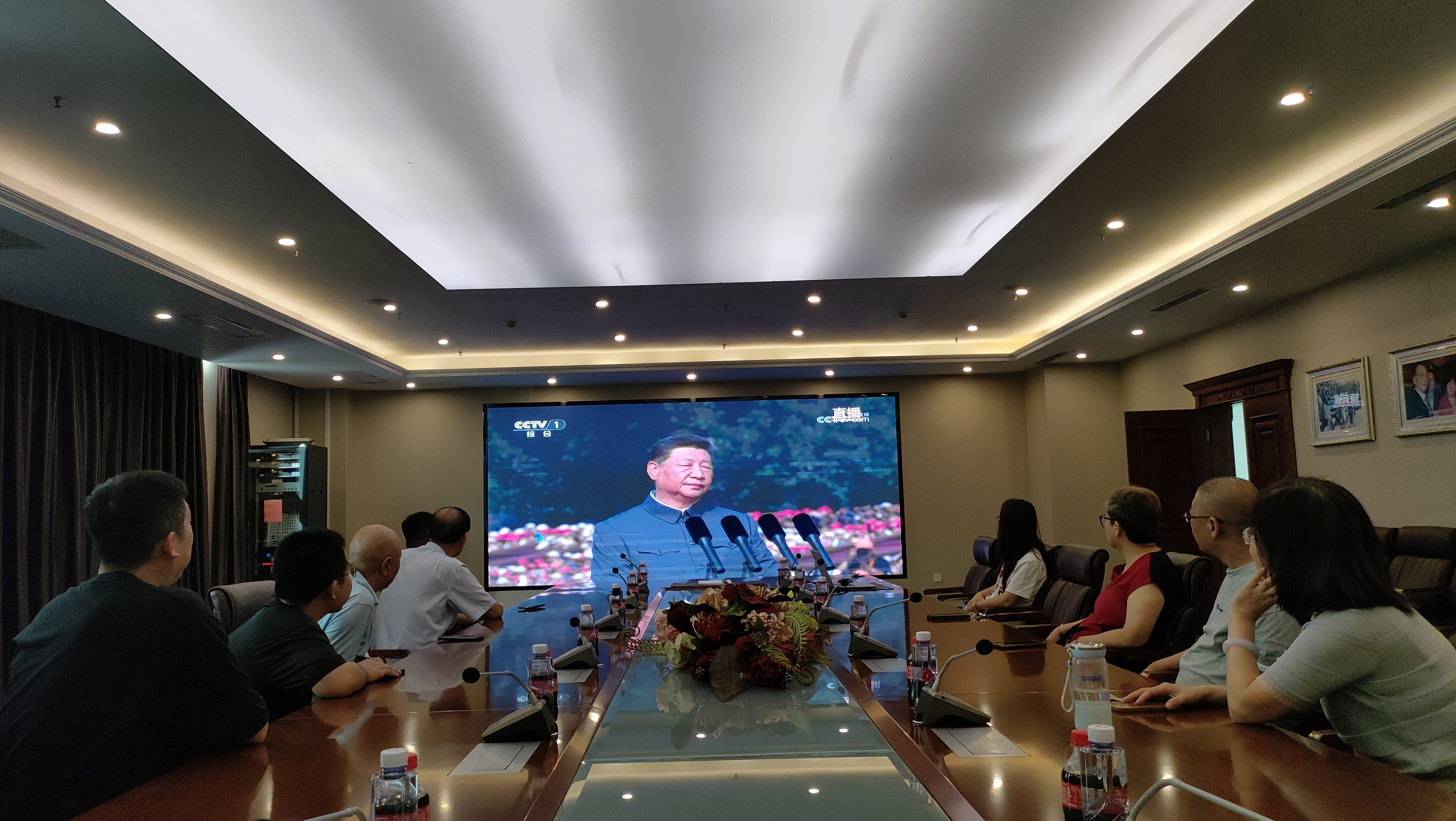 上午9時,大家齊聚會議室,與全國人民一起見證這一莊嚴時刻?!爸腥A民族偉大復興勢不可擋!人類和平與發(fā)展的崇高事業(yè)必將勝利!”習近平總書記的講話激蕩人心、照亮未來。