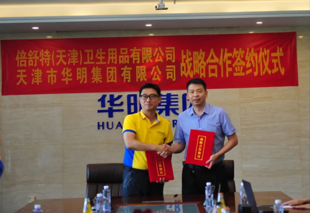 2023年6月26日,天津包裝行業(yè)領(lǐng)軍企業(yè)天津市華明集團(tuán)有限公司與健康護(hù)理產(chǎn)品的創(chuàng)造者和健康護(hù)理文化的傳播者的倍舒特(天津)衛(wèi)生用品有限公司舉行了戰(zhàn)略合作簽約儀式,攜手共進(jìn),強(qiáng)強(qiáng)聯(lián)合,共享發(fā)展!