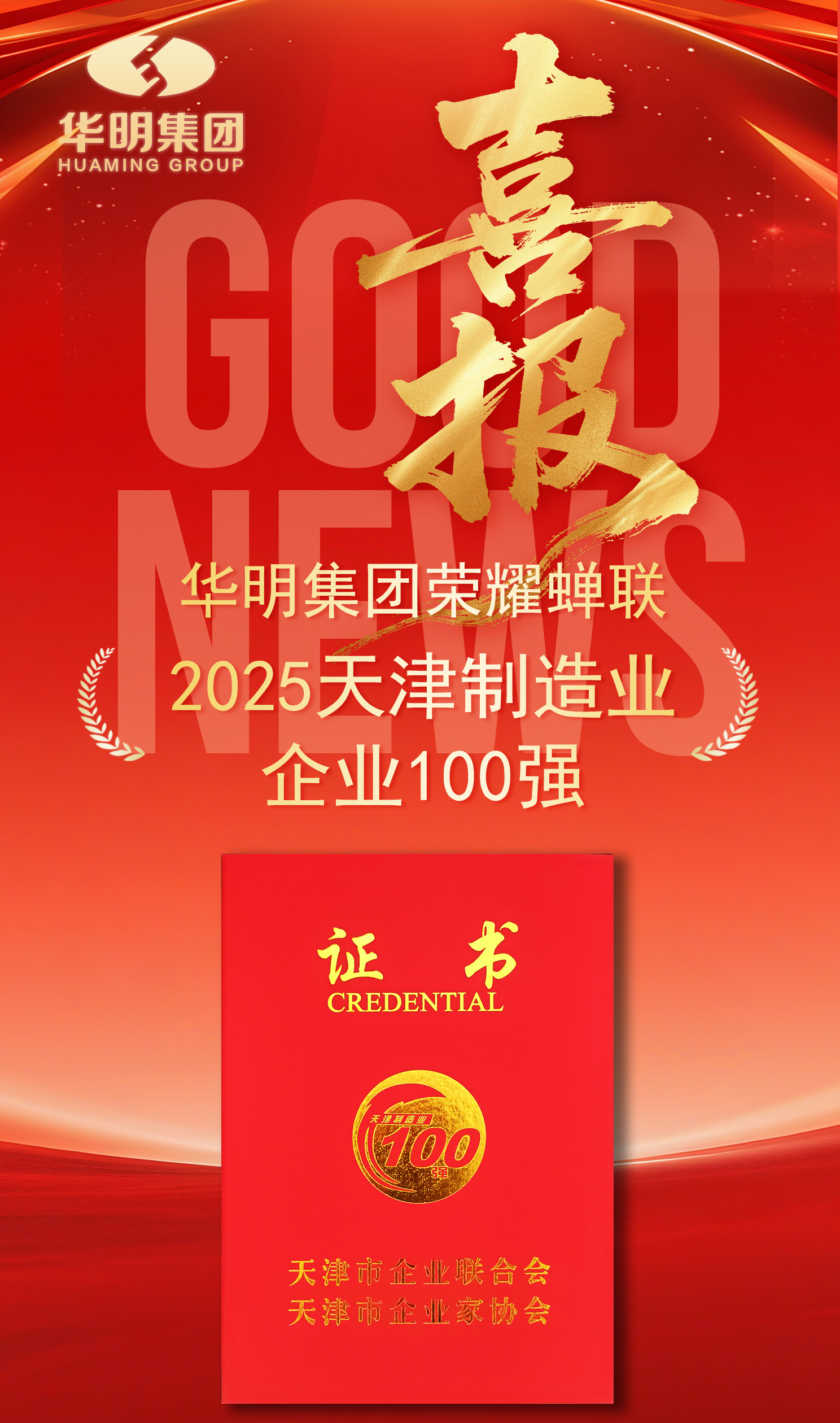 2025年:華明集團(tuán)榮耀蟬聯(lián)2025天津制造業(yè)企業(yè)100強(qiáng)