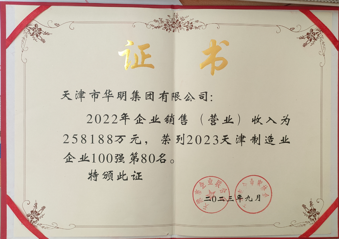 2022年天津制造業(yè)企業(yè)100強第80名
