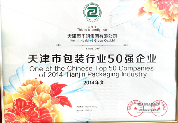 2014年被天津市包裝技術(shù)協(xié)會(huì)評(píng)為天津市包裝行業(yè)50強(qiáng)企業(yè)
